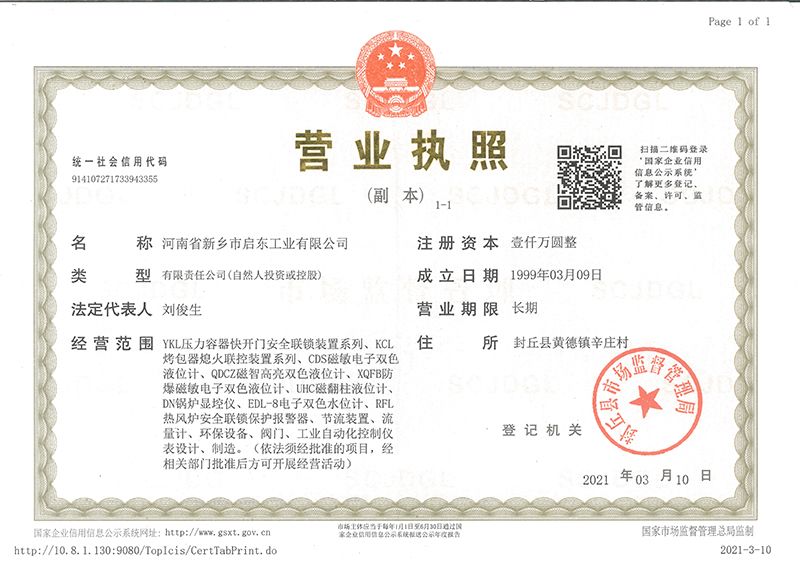 河南省新鄉(xiāng)市啟東工業(yè)有限公司始建于1987年,是專注研發(fā)、生產(chǎn)自動(dòng)化儀器儀表(主要與壓力容器、鍋爐等容器配套使用)的廠家。主要產(chǎn)品有液位計(jì)(磁敏雙色型、磁翻柱型等)系列、烤包器熄火聯(lián)控裝置系列、壓力容器快開門安全聯(lián)鎖保護(hù)裝置系列、鍋爐報(bào)警器系列。二十多年來,公司產(chǎn)品暢銷國內(nèi)并遠(yuǎn)銷俄羅斯、蒙古與東南亞,深得廣大用戶的信賴和好評(píng)。我們多年來致力于自動(dòng)化儀器儀表的研制生產(chǎn),公司現(xiàn)具有完善的生產(chǎn)、試驗(yàn)、檢測手段和設(shè)備。科技創(chuàng)新、誠信服務(wù),是我們不變的經(jīng)營理念,我們將以強(qiáng)有力的技術(shù)支持及售后竭誠為客戶提供良好的服務(wù)。  2012年我公司成功研發(fā)了KCL系列烤包器熄火聯(lián)控裝置,并于2013年2月2日榮獲中華人民共和國國家知識(shí)產(chǎn)權(quán)局辦法的《實(shí)用新型**證書》<**號(hào):2021202257735>該產(chǎn)品廣泛應(yīng)用于唐鋼等大型鋼鐵企業(yè),為烤包器安全作業(yè)提供了有力的保障。  2002年我公司成功研發(fā)磁敏電子雙色液位計(jì)獨(dú)特的高亮度LED紅綠雙色顯示,獲得了專家的首肯和用戶的一致好評(píng)。在此基礎(chǔ)上我公司研發(fā)人員十年磨一劍,致力于XQFB-1防爆型磁敏雙色液位計(jì)的研發(fā),于2013年12月27日由國家防爆電器產(chǎn)品質(zhì)量監(jiān)督檢驗(yàn)中心檢驗(yàn)合格并頒發(fā)防爆合格證書<編號(hào):cnex19.0883>。該產(chǎn)品性能得到了充分的發(fā)揮,廣泛應(yīng)用于含有Ⅱ類A·B級(jí)T1-T4組可燃?xì)怏w或蒸汽與空氣混合形成的爆炸性混合物的0區(qū)、1區(qū)危險(xiǎn)場所。連接用戶DCS或PLC系統(tǒng)實(shí)現(xiàn)遠(yuǎn)距離集中顯示和控制,從而實(shí)現(xiàn)節(jié)能、數(shù)字化管理。為用戶增加了一定的經(jīng)濟(jì)效益和社會(huì)效益,。2014年公司成功申請了夢潤儀表的logo,新的品牌新的形象,夢潤儀表是啟東的LOGO, 歡迎新老用戶前來洽談合作。  我們一如既往地注重科研的投入,憑借產(chǎn)品的不斷更新、加大科技含量,進(jìn)一步拓展市場。我們相信品質(zhì)成就未來,以過硬質(zhì)量、優(yōu)惠價(jià)格、完善的售后服務(wù)熱忱歡迎廣大客戶來我司視察指導(dǎo)、洽談業(yè)務(wù);精誠合作,共創(chuàng)輝煌!